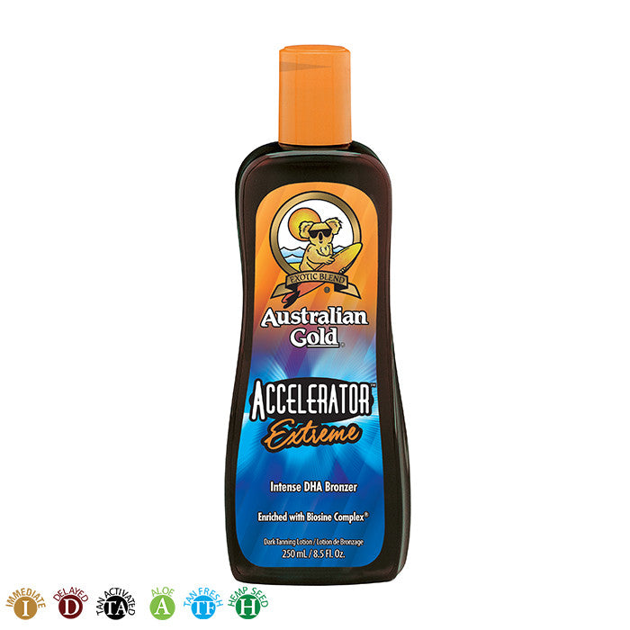 Uno degli intensificatori best seller Australian Gold si arricchisce di DHA per un’abbronzatura ancora più rapida, intensa e duratura sviluppata per difendere la pelle dall’eccessiva esposizione ai raggi UV. L’esclusivo Biosine Complex® garantisce il massimo apporto di sostanze nutritive, idratanti e protettive, mentre l'estratto di Echinacea si unisce a Oli Nativi Australiani, Vitamine A ed E in un blend sviluppato specificamente per proteggere la pelle da inquinamento ed aggressioni ambientali. Il risultato è un’abbronzatura intensa dalla profumazione tropicale.