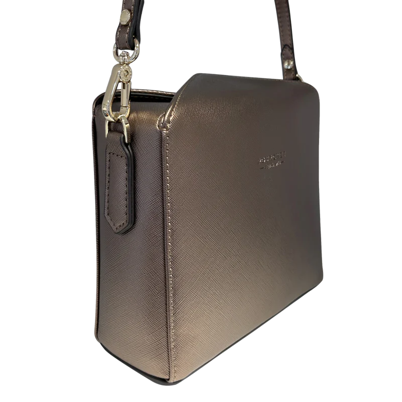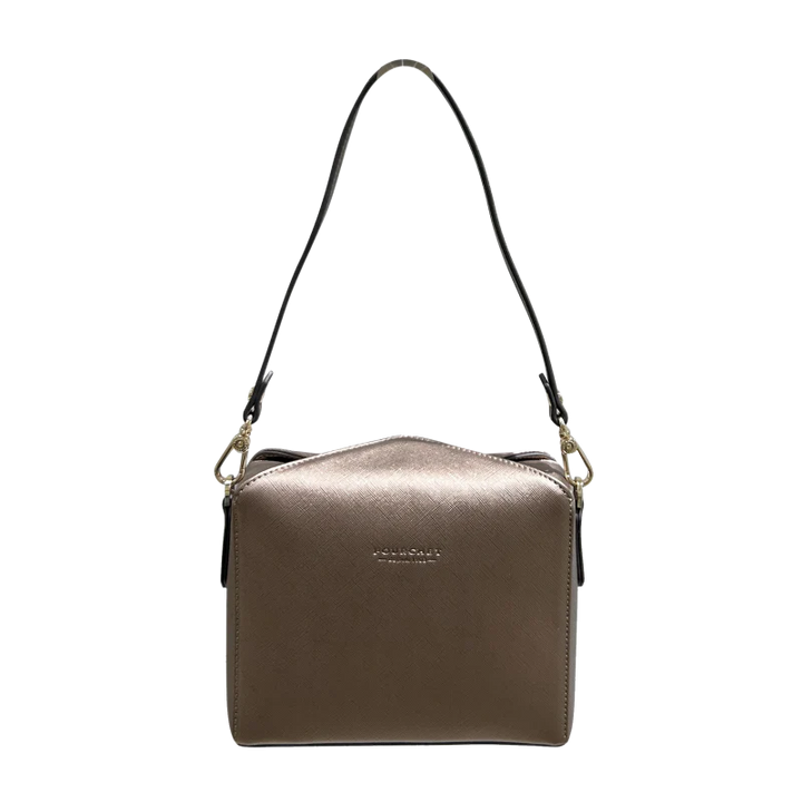 Sebbene il suo colore principale sia il bronzo, la borsa presenta riflessi che cambiano a seconda della luce, conferendole un aspetto dinamico. Questa borsa è la scelta ideale per chi cerca un accessorio pratico ma elegante, che si adatti a diversi outfit e occasioni.