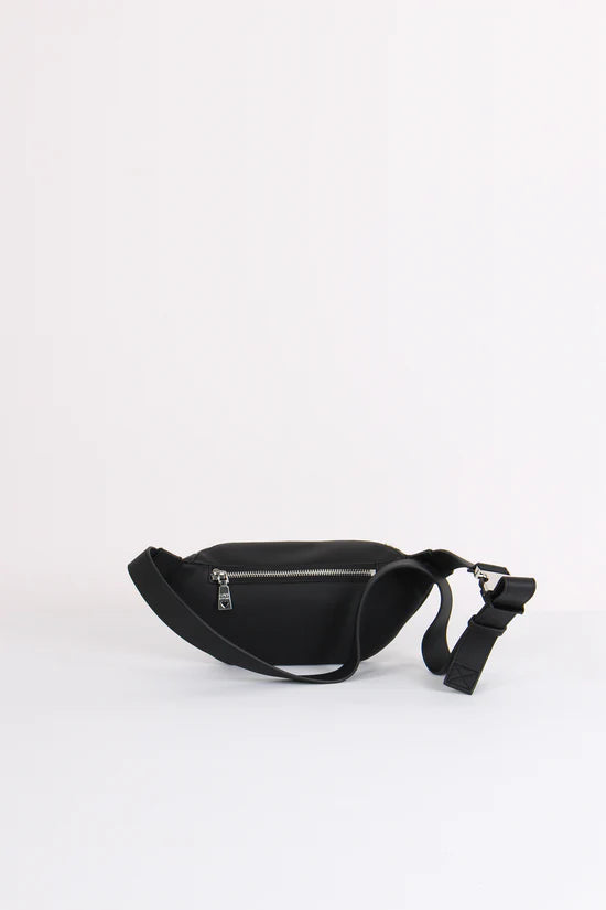 Marsupio in ecopelle liscia chiuso con zip. Maxi logo Lettering in metallo applicato sul davanti. Cintura regolabile con chiusura con cerniera