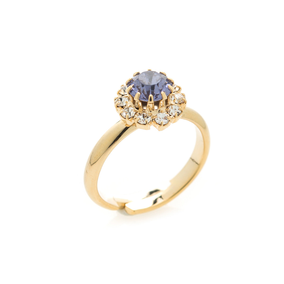 Anello regolabile bagnato in oro con cristalli Swarovski.
