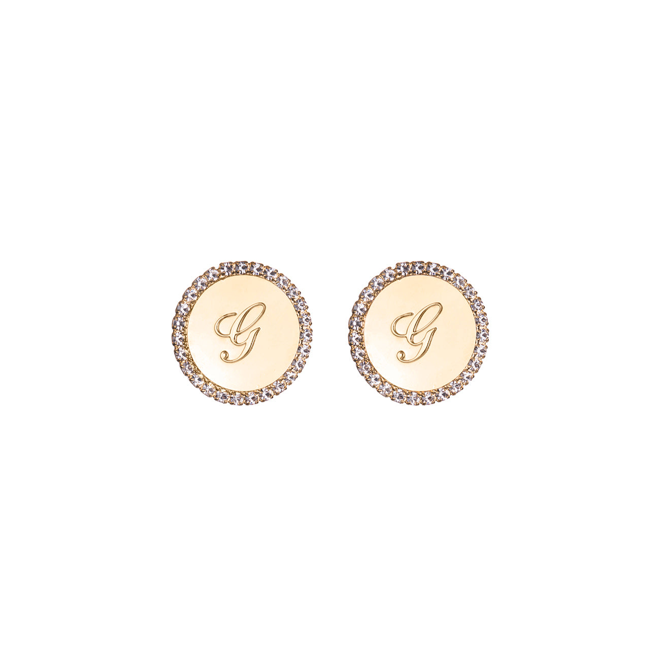 Orecchini a lobo bagnati in oro con cristalli Swarovski bianchi con chiusura a farfalla.