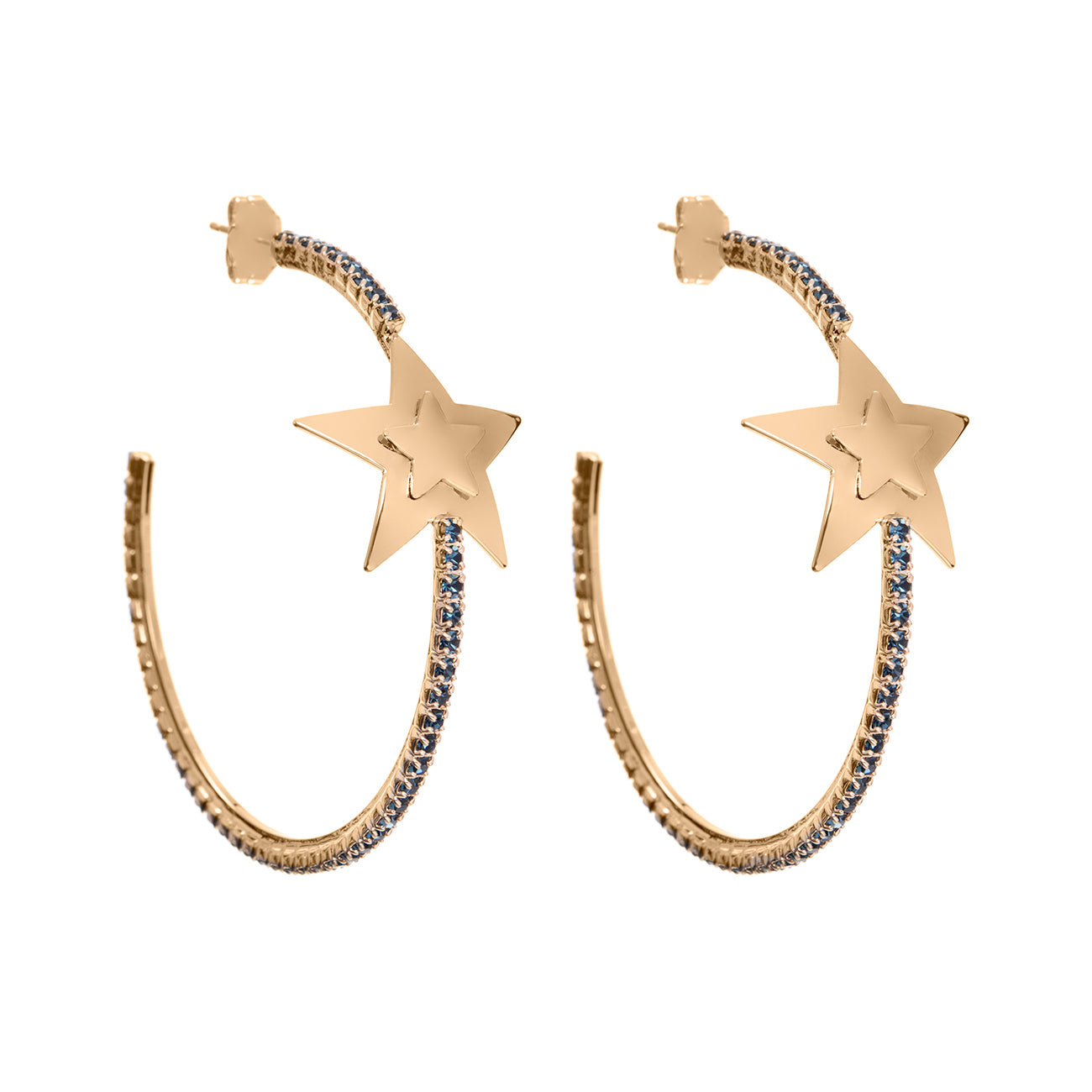 Orecchini a cerchio bagnati in oro con applicazioni a forma di stella, cristalli Swarovski NERO e chiusura farfall