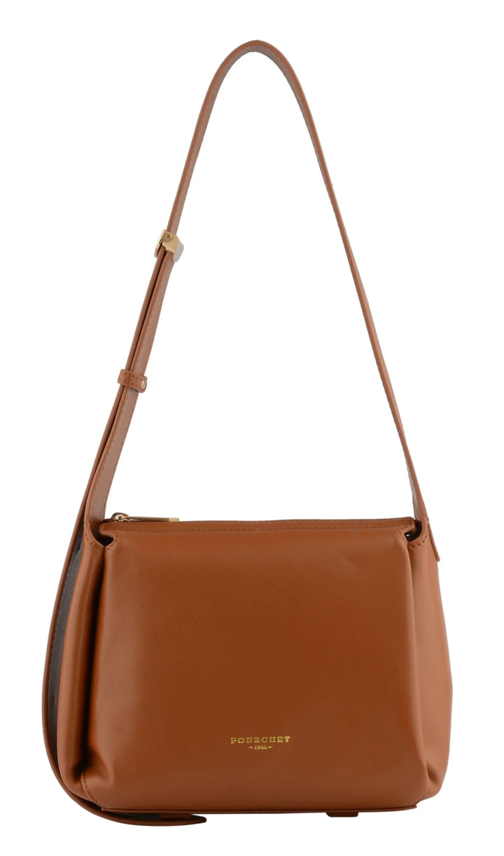 Piccola borsa a tracolla color cammello Pourchet