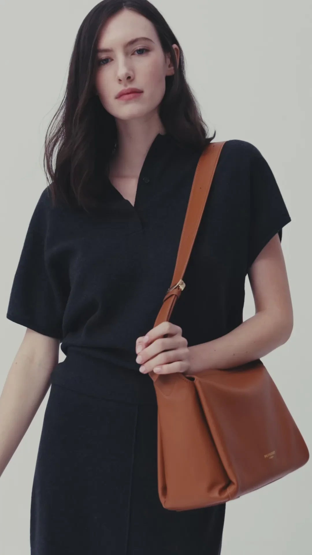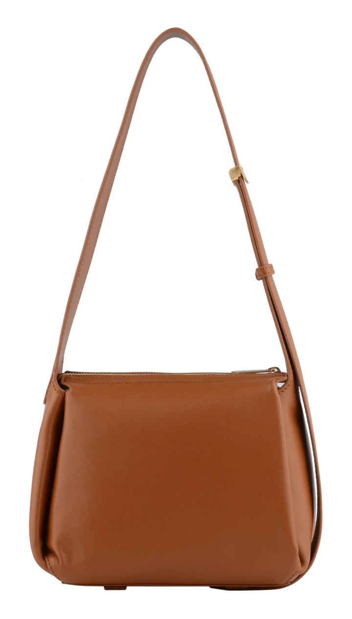 Realizzata in morbida e resistente pelle, crea un sottile equilibrio tra modernità e tradizione classica. Le linee pulite della borsa ne esaltano il carattere minimalista, impreziosito da dettagli eleganti come il manico in pelle, pensato per una vestibilità comoda ma sofisticata. La delicata finitura dorata aggiunge un tocco di luce.