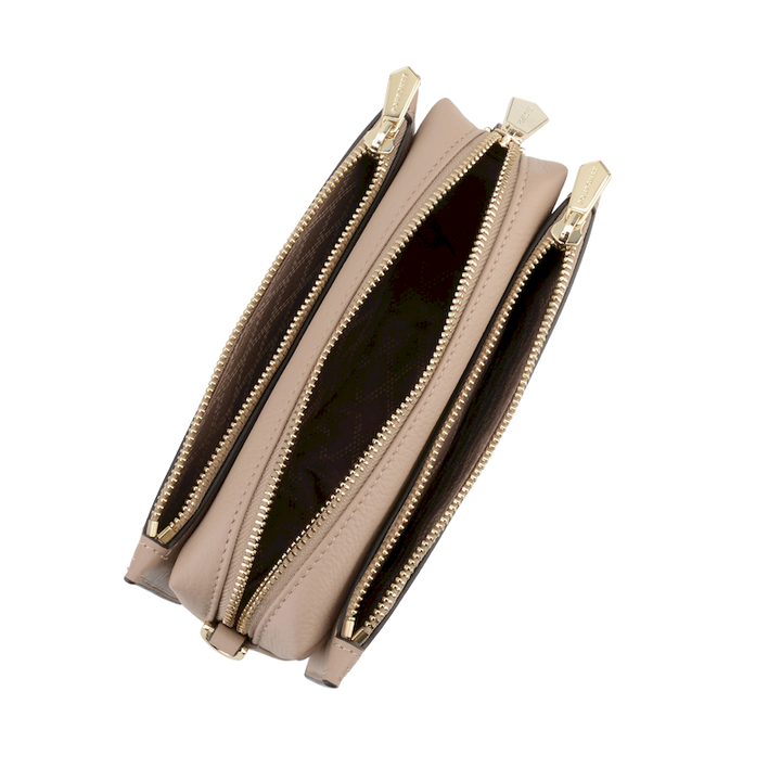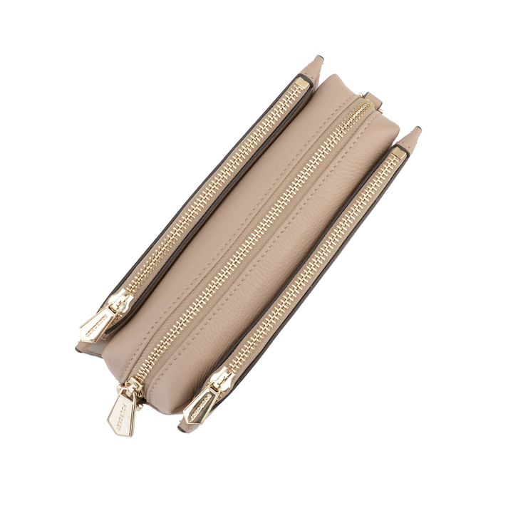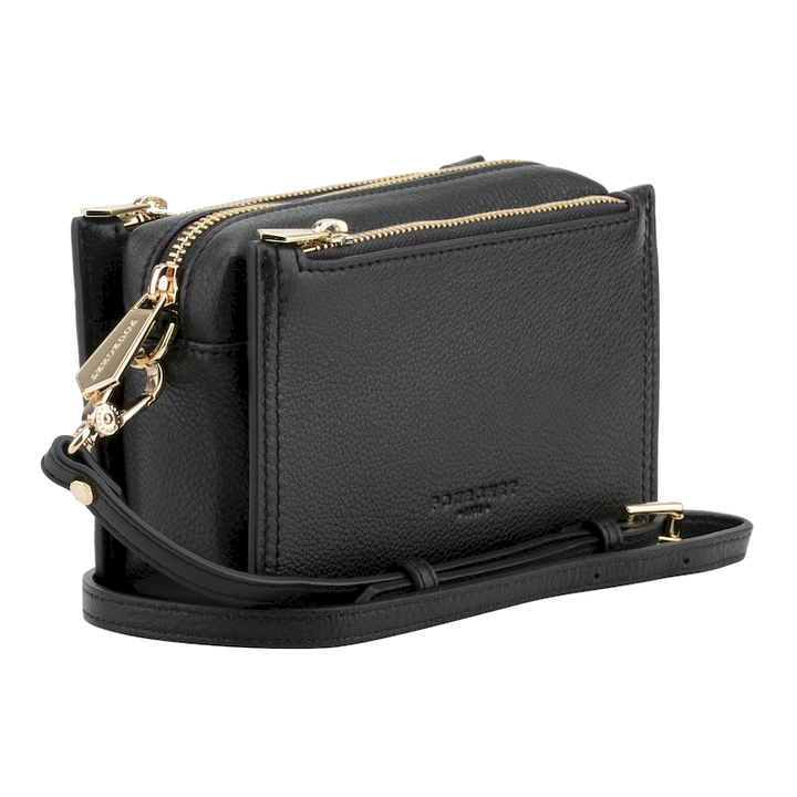 Pochette in pelle, multi tasche con tracolla estraibile.