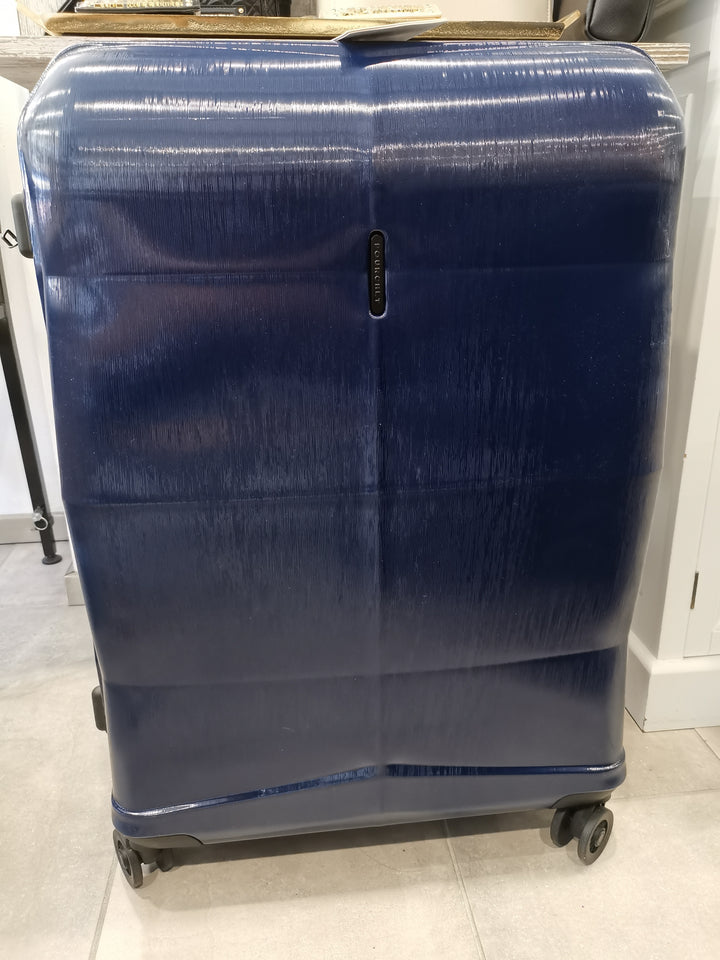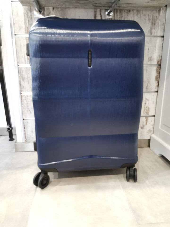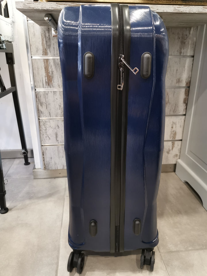 Pourchet Paris Valigia trolley in fibra di carbonio, materiale resistente ma leggero, con 4 ruote sterzanti e chiusura TSA per controlli doganali.