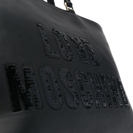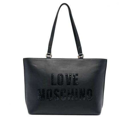 Shopping bag donna con logo Love Moschino in paillettes. Realizzata in ecopelle.Chiusura con zip.
