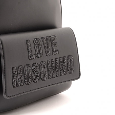 Realizzato in ecopelle con dettaglio logo brand in paillettes. Spallacci regolabili. Chiusura con zip.